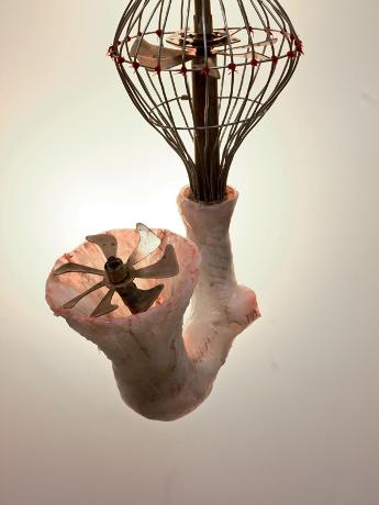 Silicone, oil paint, fabric, copper, jewellery wire,